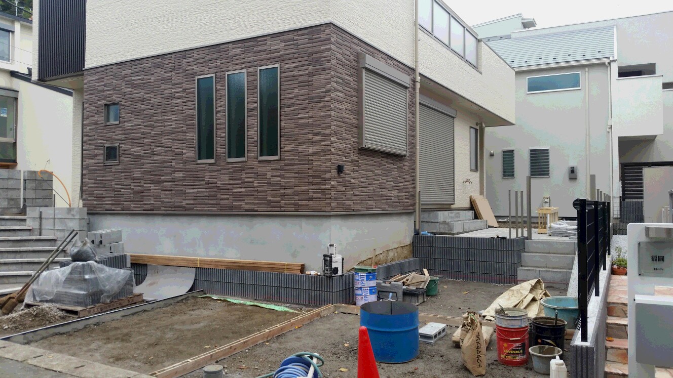 3週ほど前に投稿しました町田市のM様邸、テラスも形となり残すは門まわりとなりました。