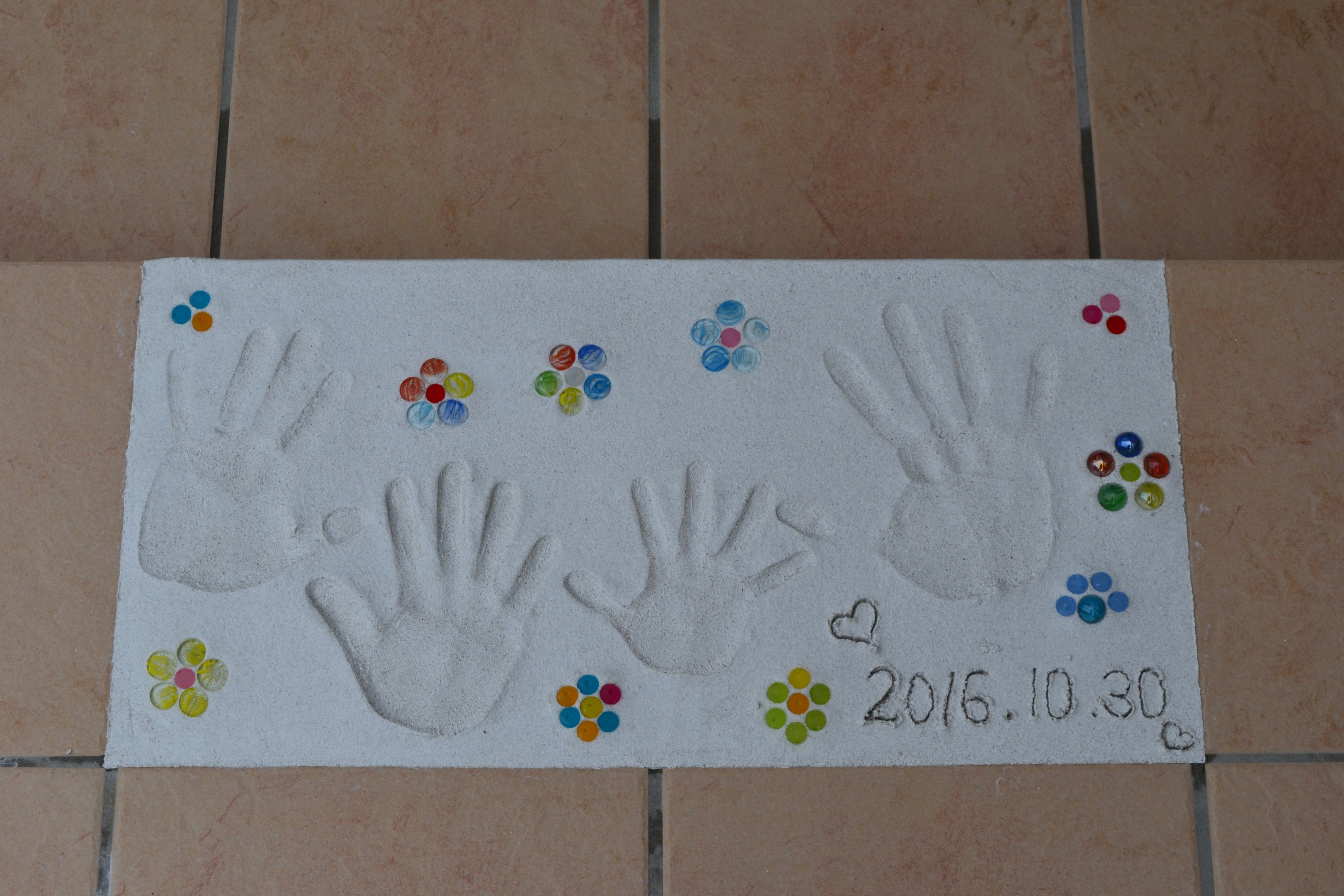 家族で手のひらを押しつける姿は楽しそうで、いつまでも良い思い出にして頂けたら嬉しく思います。