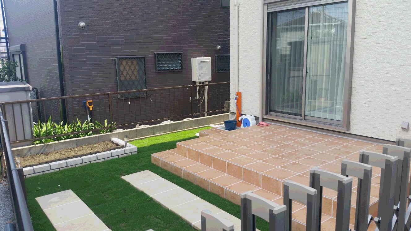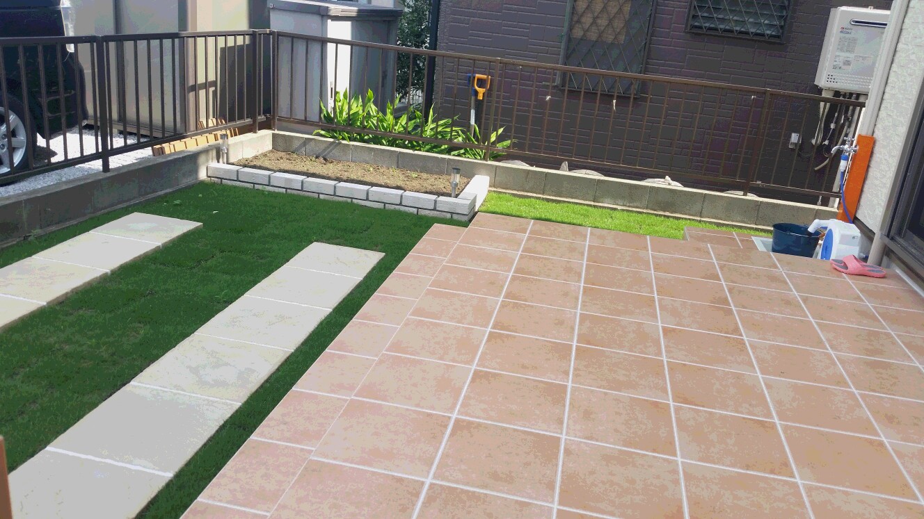 お庭の有効利用タイルテラス