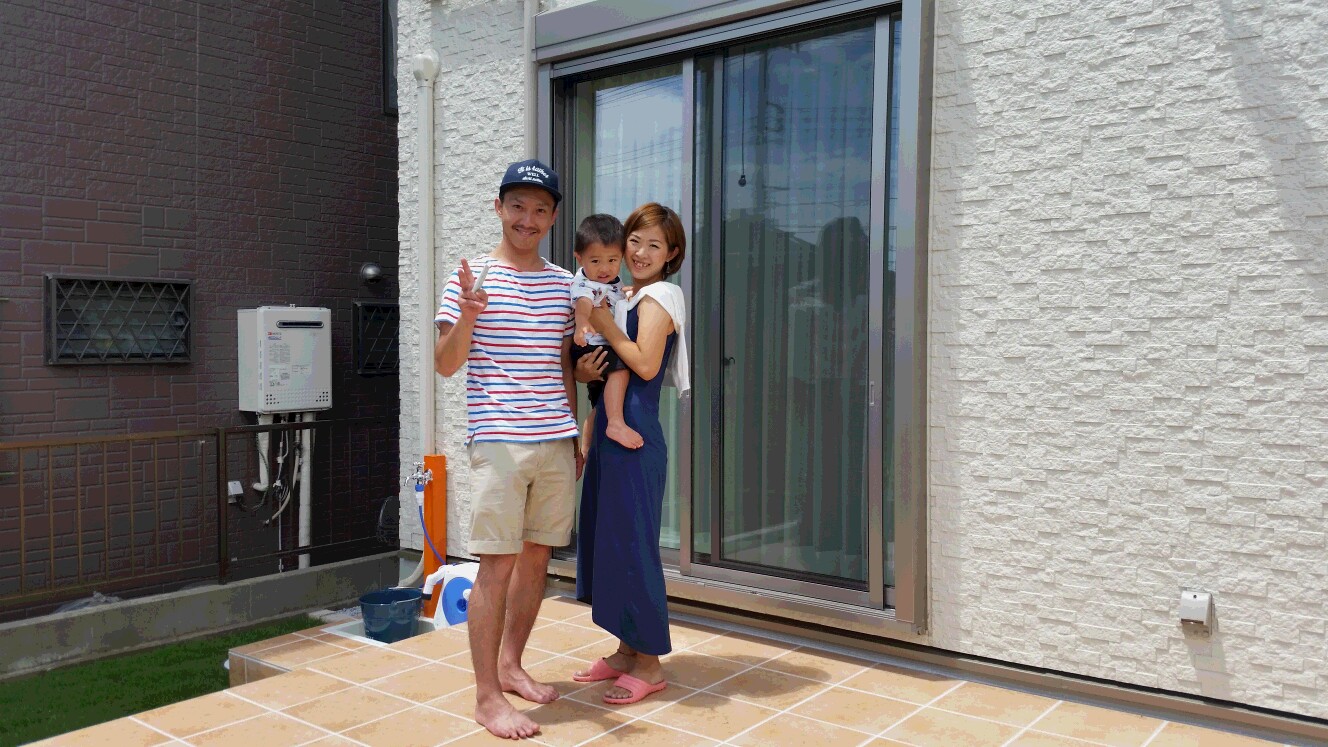 早速タイルテラスで子供にプール遊びをさせたいと大変喜んで頂きました。