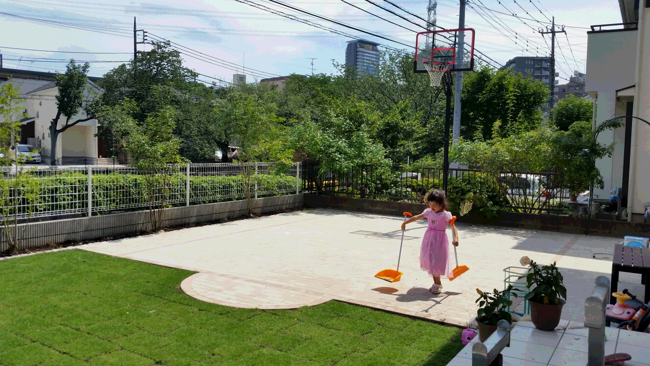 バスケットの好きなご主人、新築の時にバスケットゴールの設置をしましたがお庭が泥のままだと何かと不便,