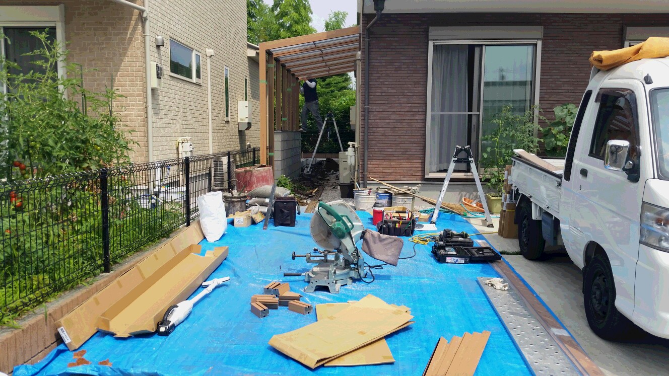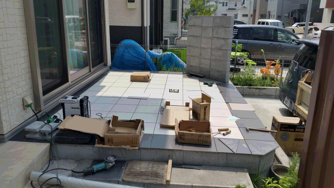 夏を目の前にしてテラスのあるお庭工事がどんどん進んでいます。