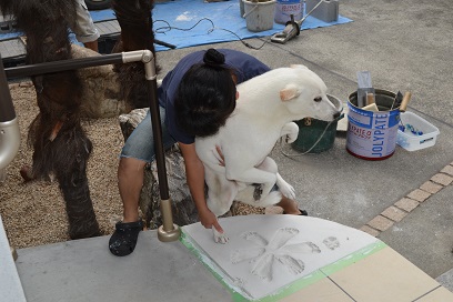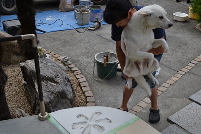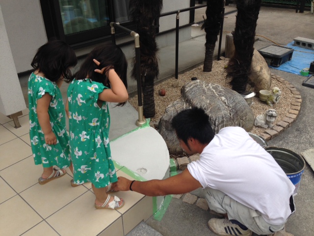 乾燥具合を見ながら・・・ベストなタイミングを見計らってお施主様を呼ぶと「わ~い」・・・ぺた、