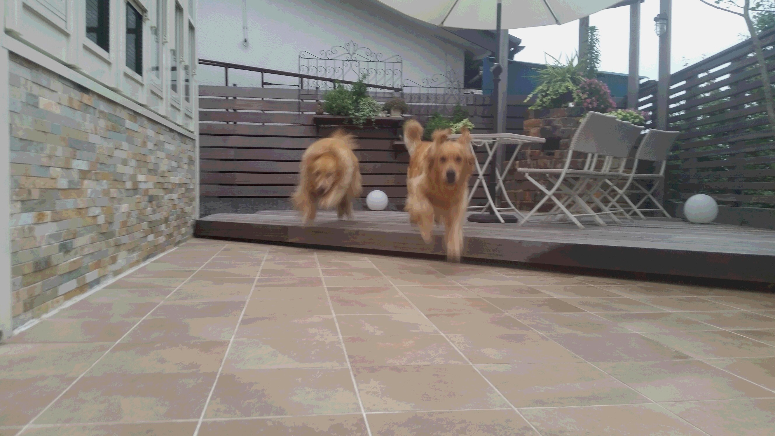 とにかくデカいのが狂ったように狭い庭を全速力!