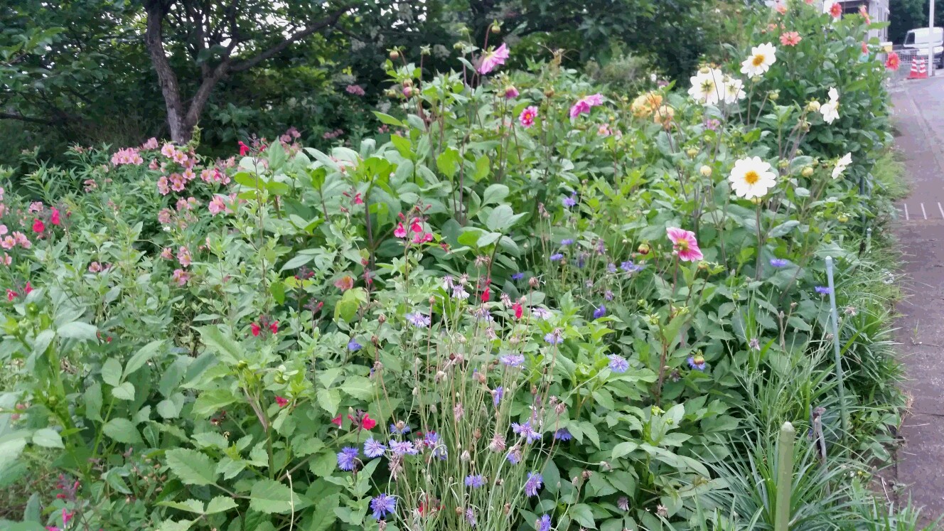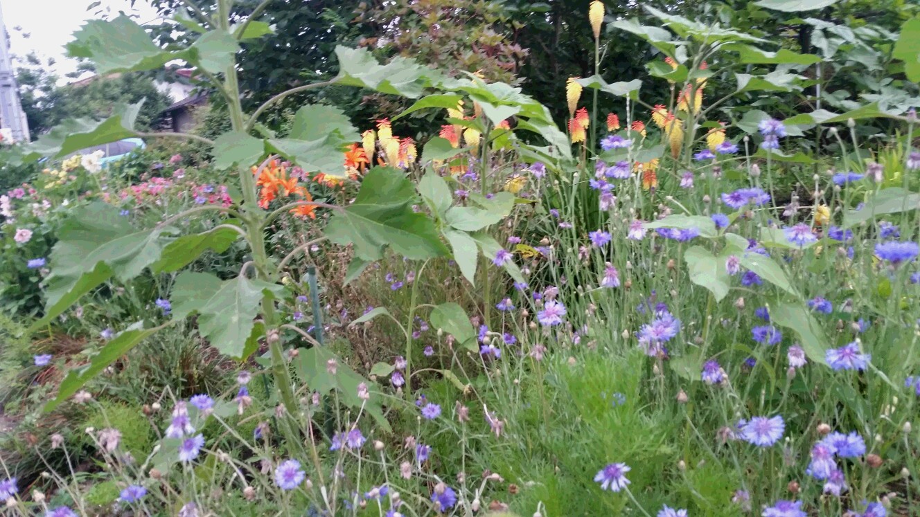 じめじめと中途半端な雨だったり、青空が出たと思ったら蒸し暑く、何とも気分のパッとしない天気ですが、花壇に目を向けるといろんな種類の草花が出て来てます。