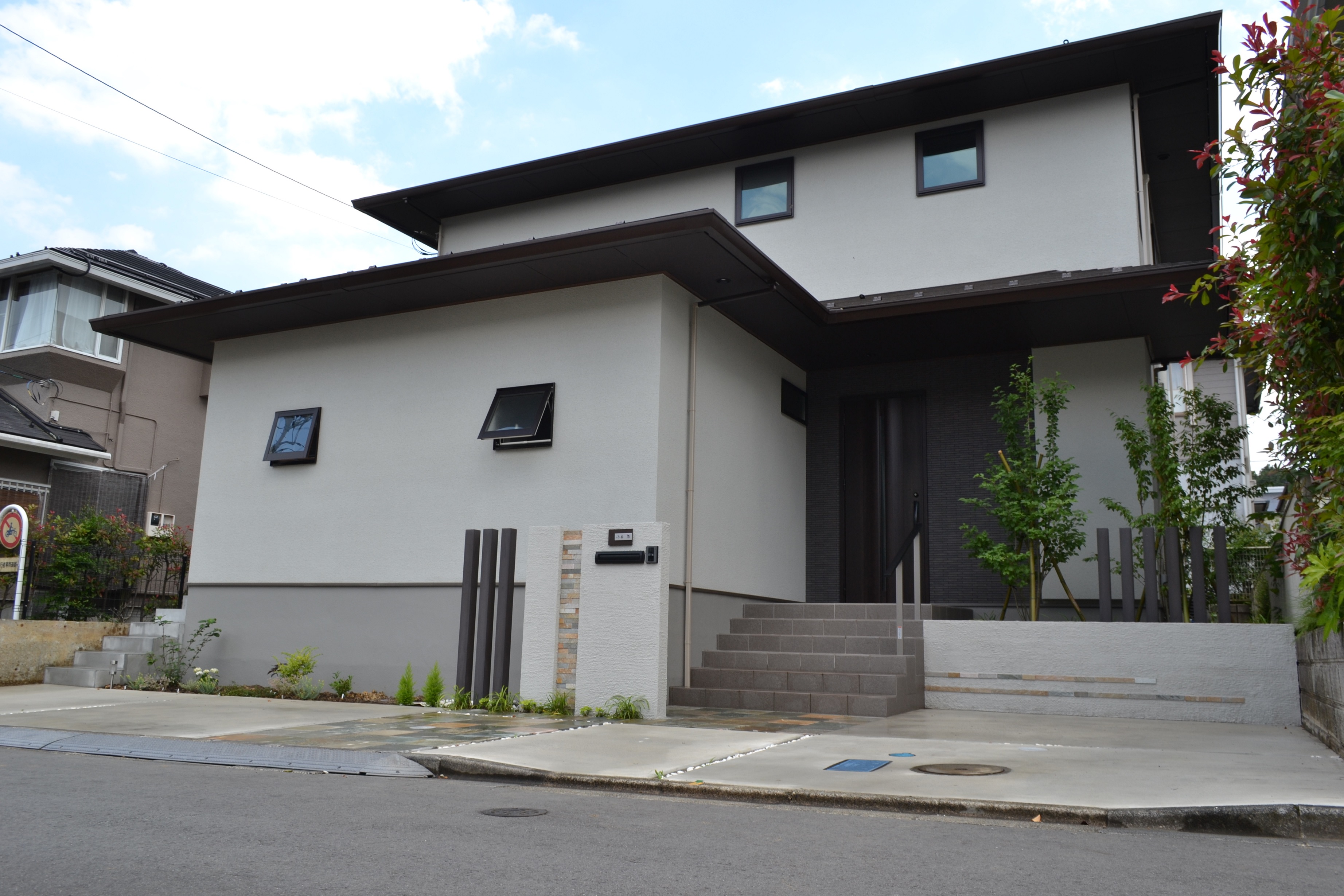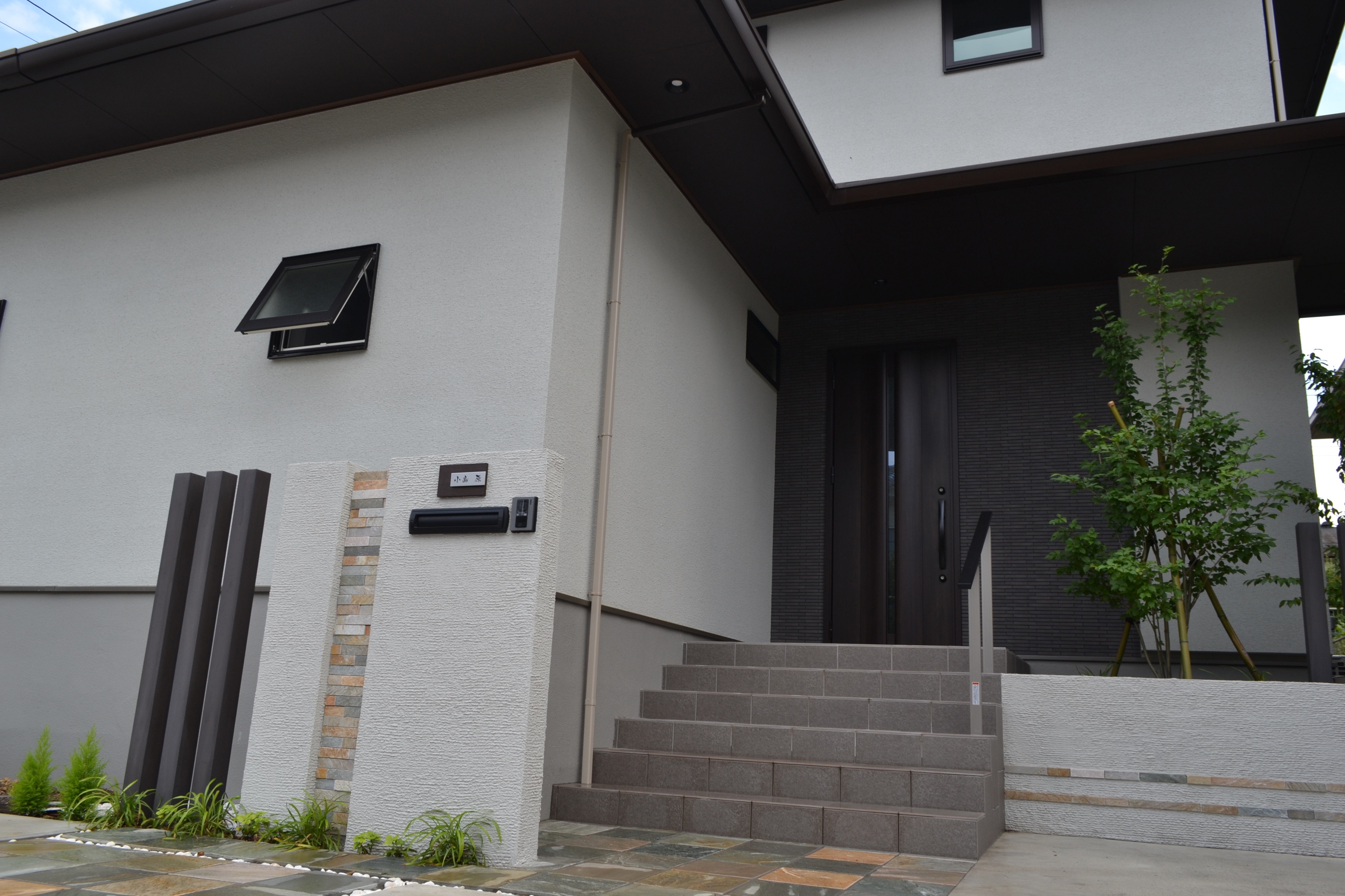 「アプローチや門袖にアクセントとして使用した石貼りがご近所の方たちから絶賛されたのよ。」とお母様。