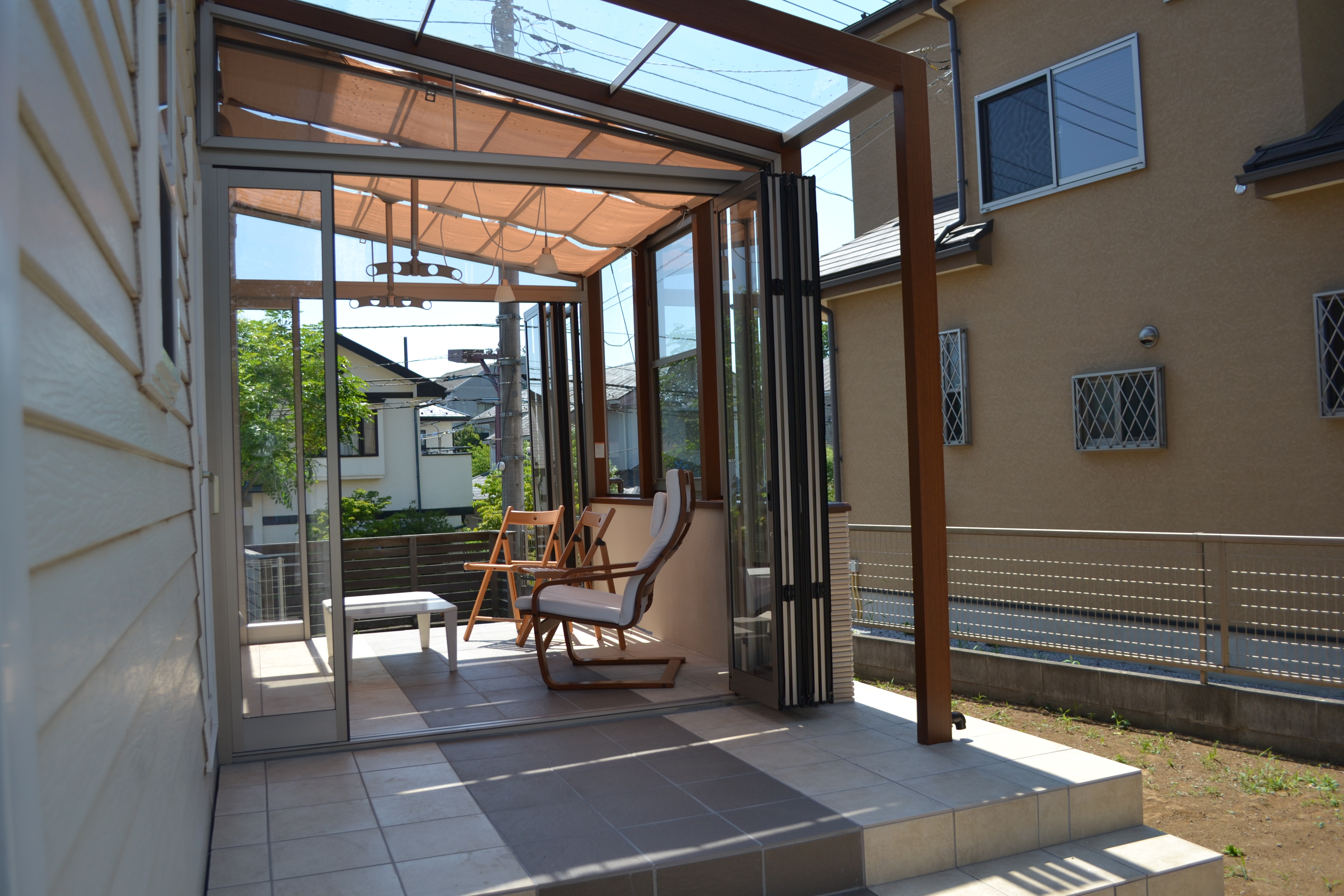 日本の住宅事情、限られたスペースの有効利用!タイルのテラスにガーデンルーム、生活がガラッと変わりそうですね。