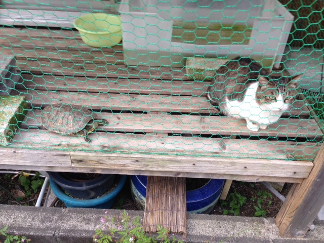 もちろん!!ネコちゃんと同じ金網の中に居るので・・・