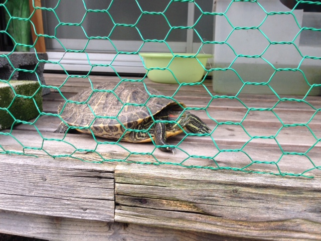 体長は約15センチほどあるミシシッピーミミアカガメ(通称ミドリカメ)がじ~っとしてました(笑)