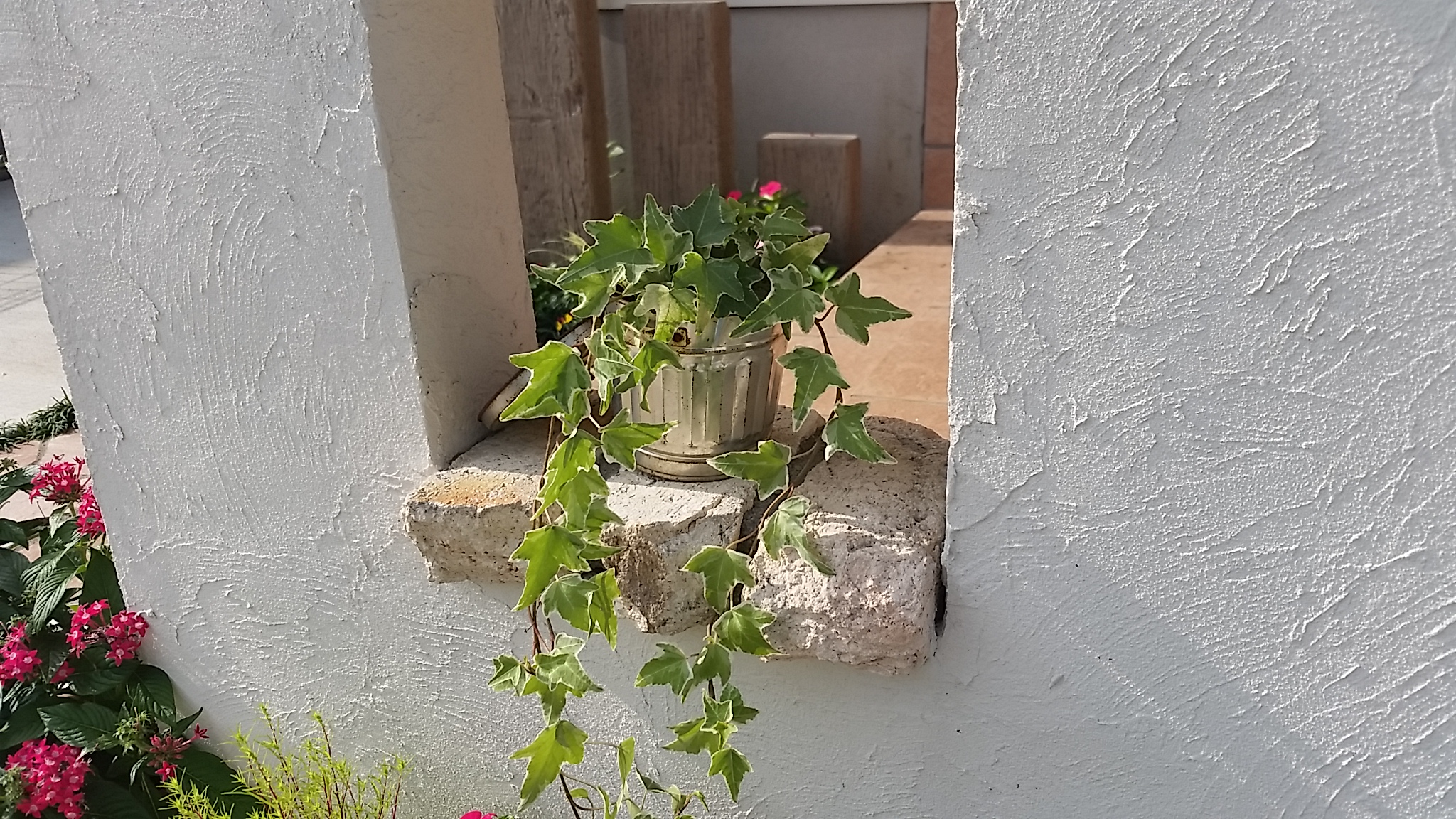 化粧ブロックにポールと植物をうまく使いお洒落にしてみました。