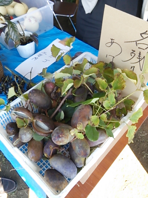 そして。。帰り際に受付のおじ様達と話をしていると、テーブルに並んでいる『 あけび 』を発見!