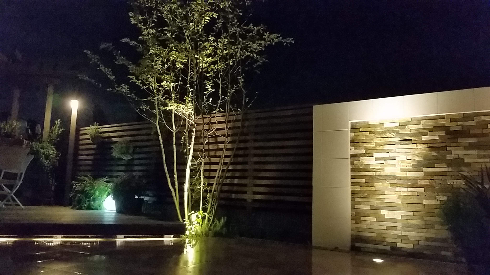 夜のシーンでは、照明器具でライトアップすることにより、より一層幻想的な雰囲気を盛り上げ癒しと魅力がいっぱい詰まったプライベート空間となります。