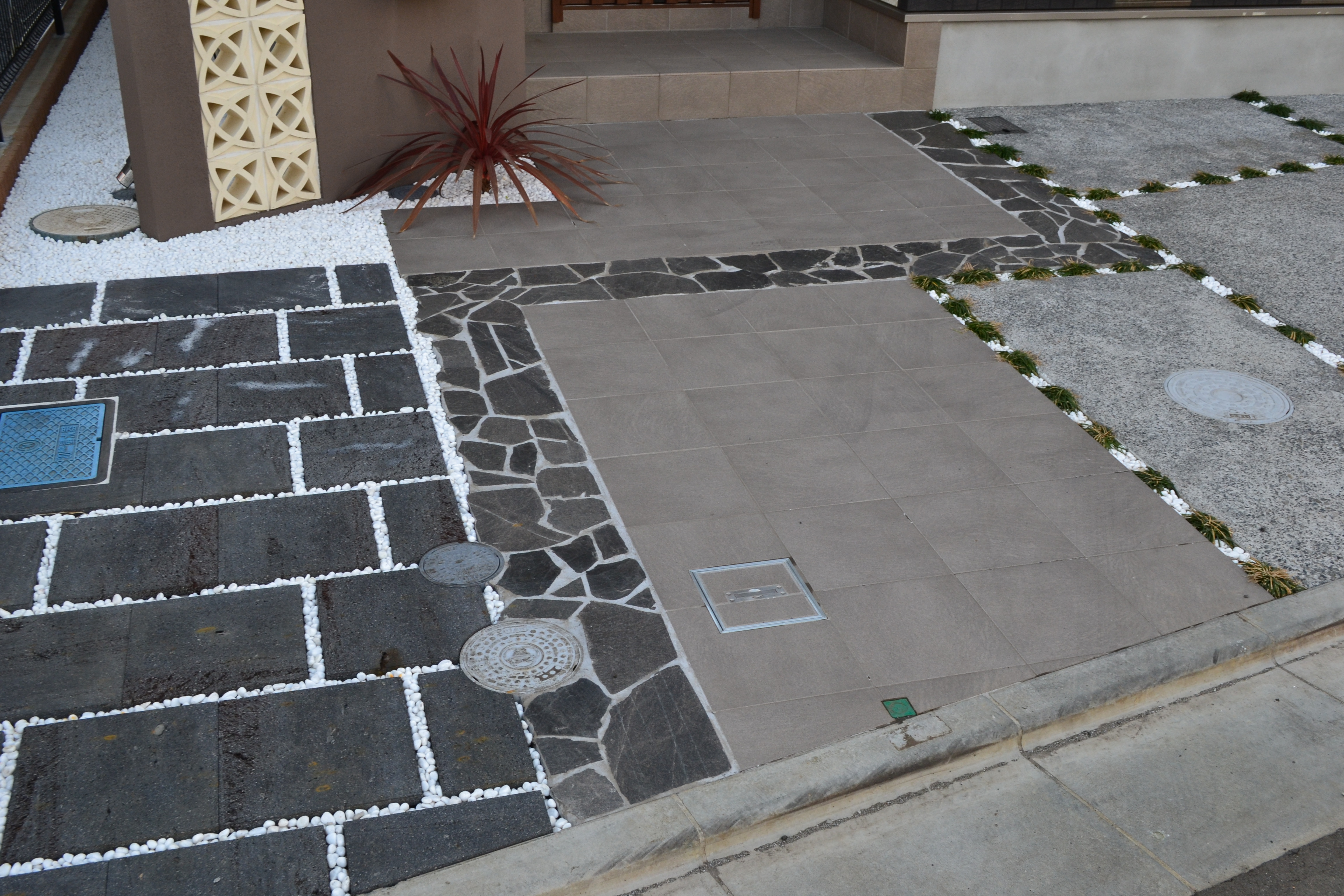 色違いの石材を組み合わせ、より存在感のあるアプローチ通路にするのもお勧めです。