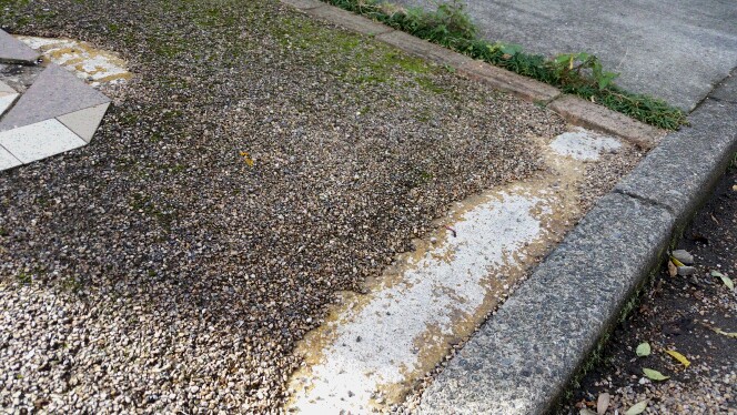 樹脂の舗装も完成時は綺麗なんです。しかし7~8・・10年も経つと元の色も解らない状態です。