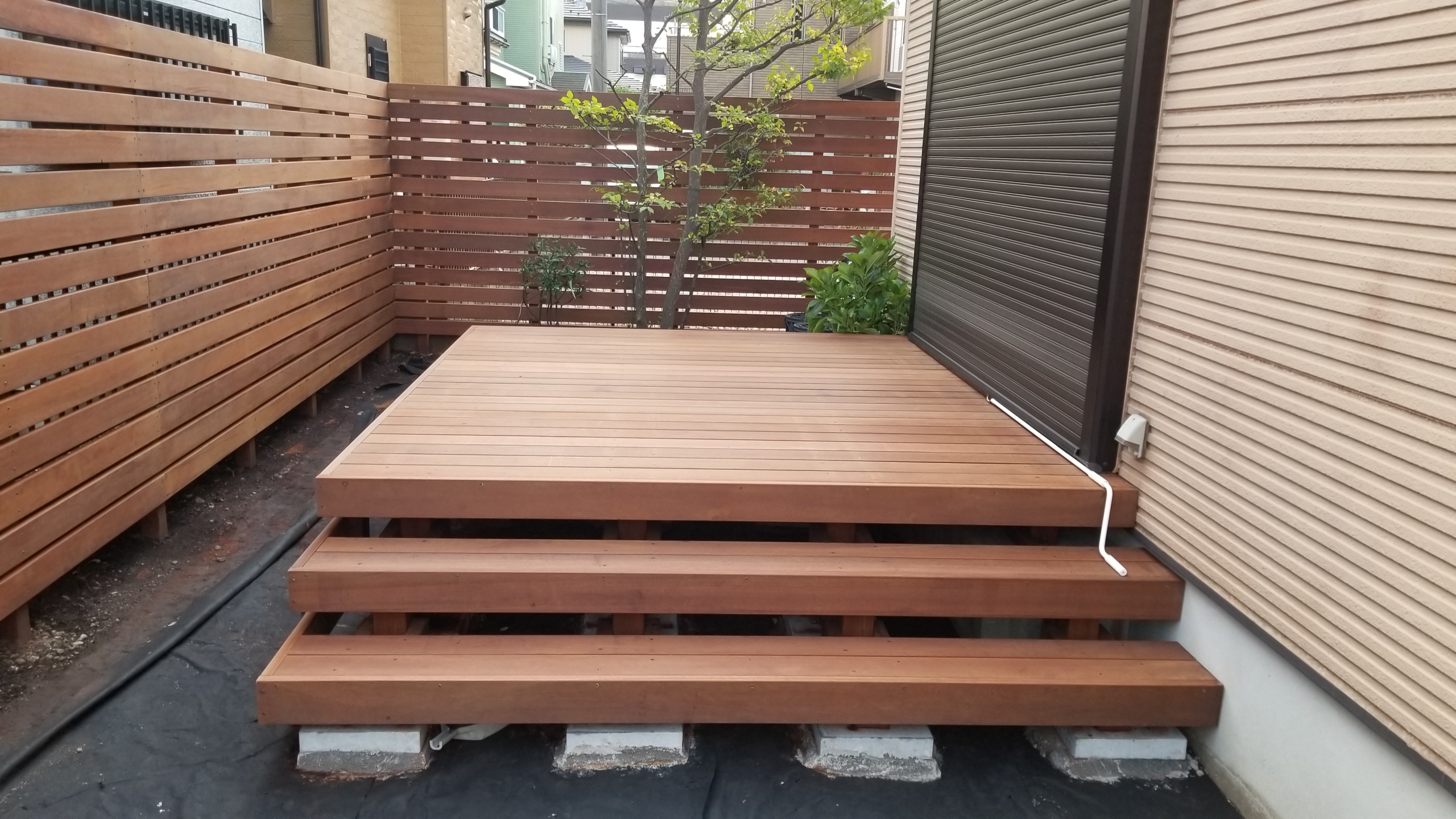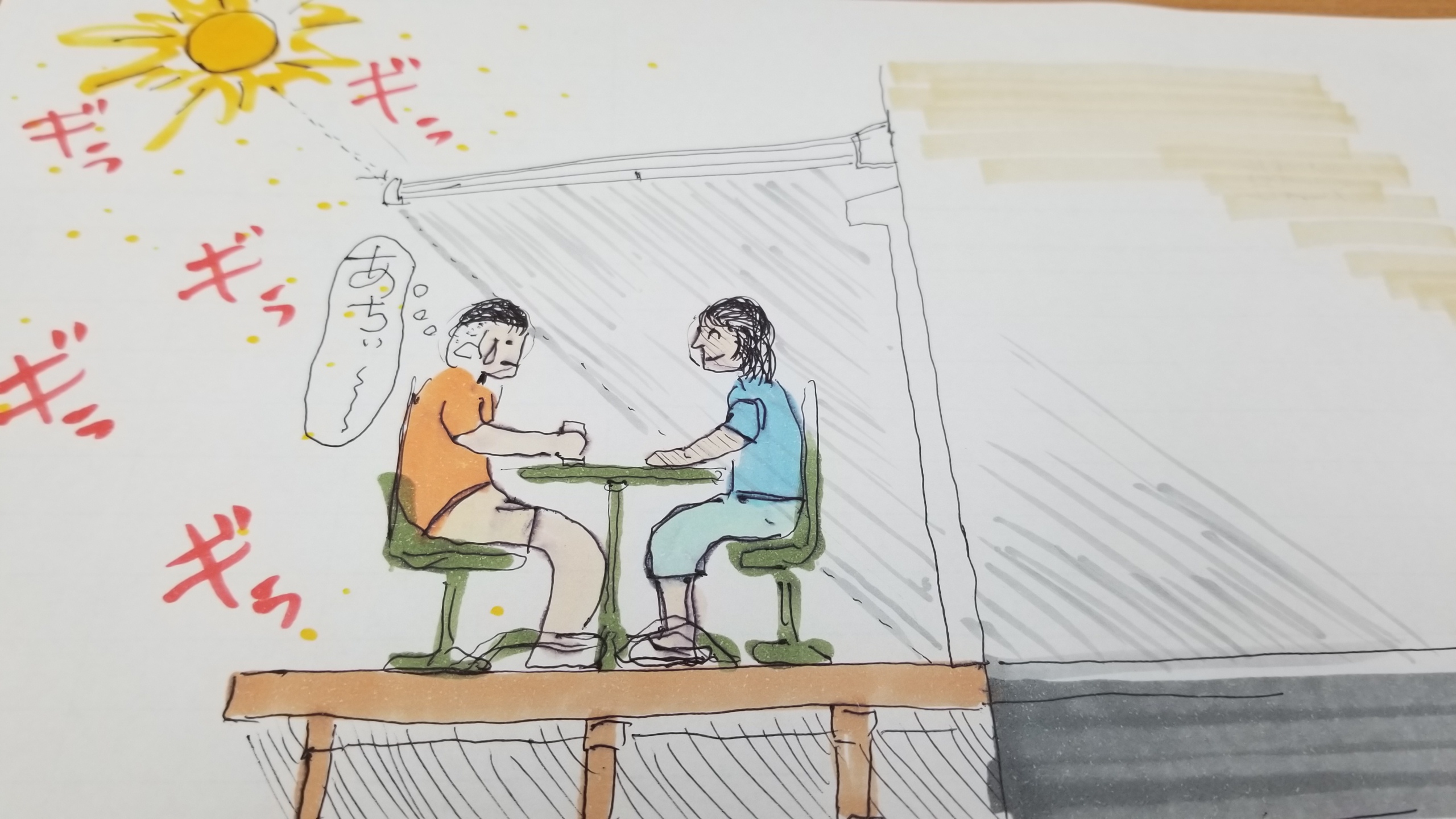 デッキのような室外に延長するアウトリビングとなると日陰を作るには違う方法がいいのかもしれません。
