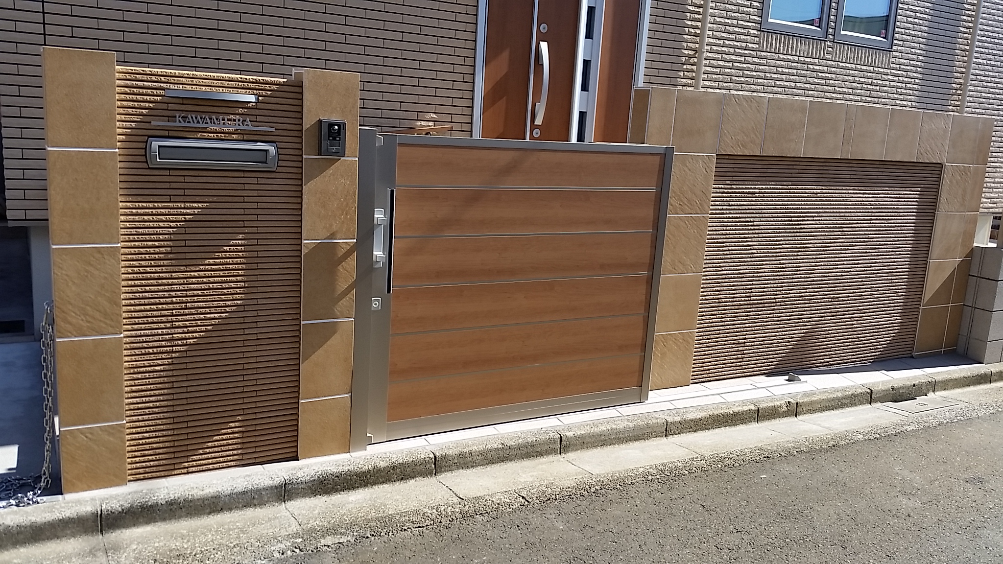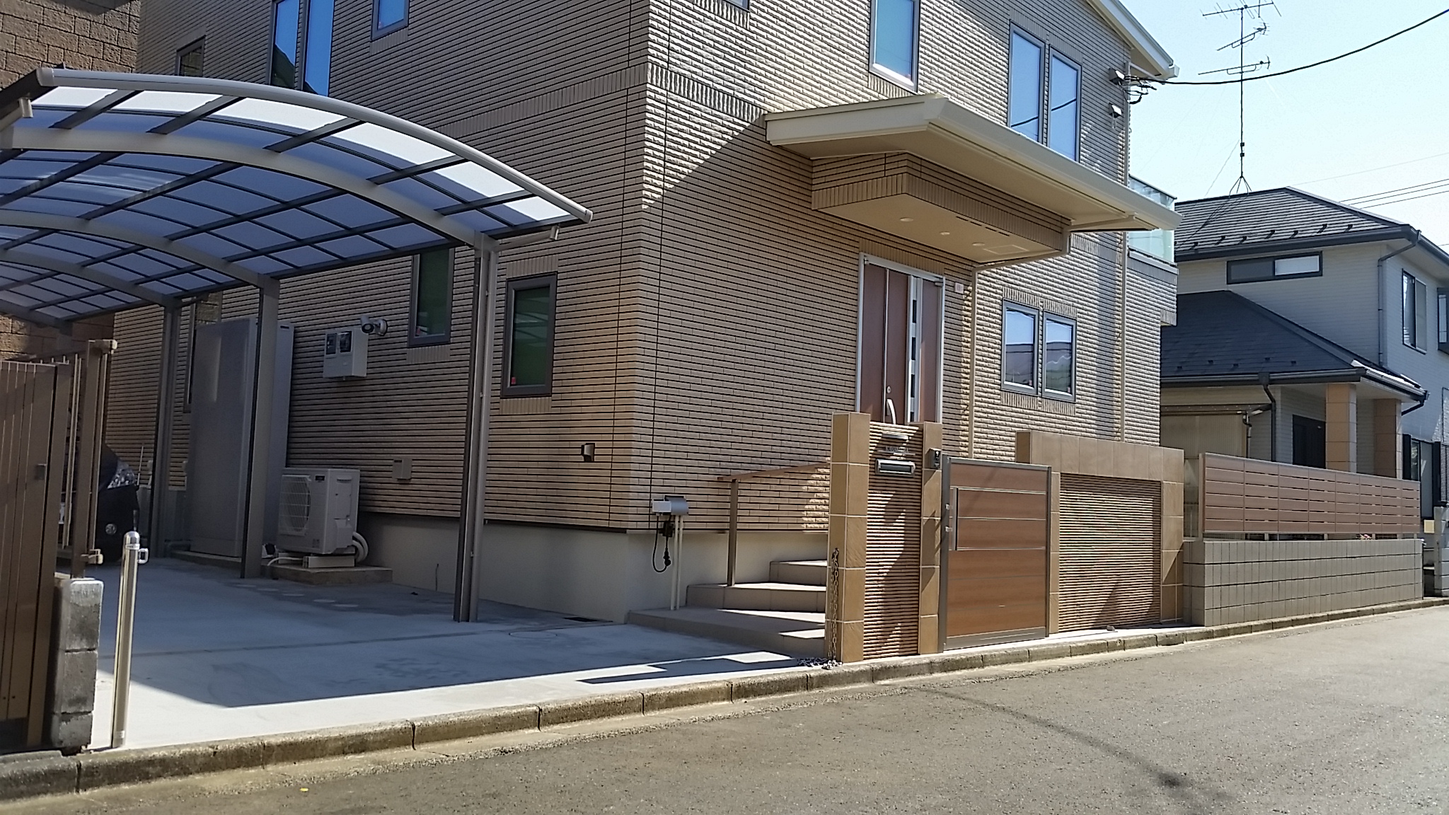施工しましたK様邸、建物に門塀の色味を合わせ、門扉・フェンスと同じデザインの商品をチョイスしました。