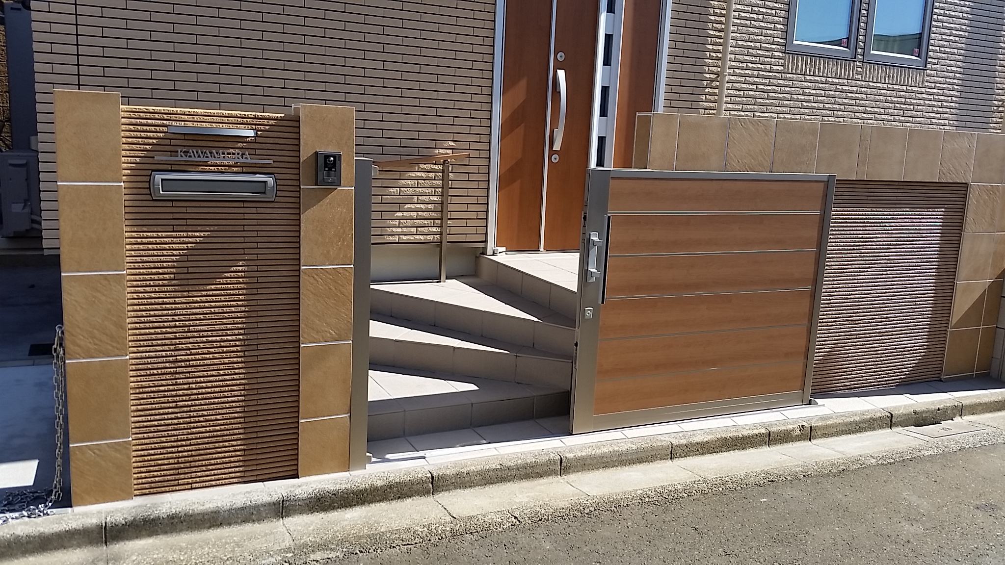 玄関ドアから隣接する道路までの距離が短く、高低差のあったK様邸、高さは階段を造作して問題解決ですが
