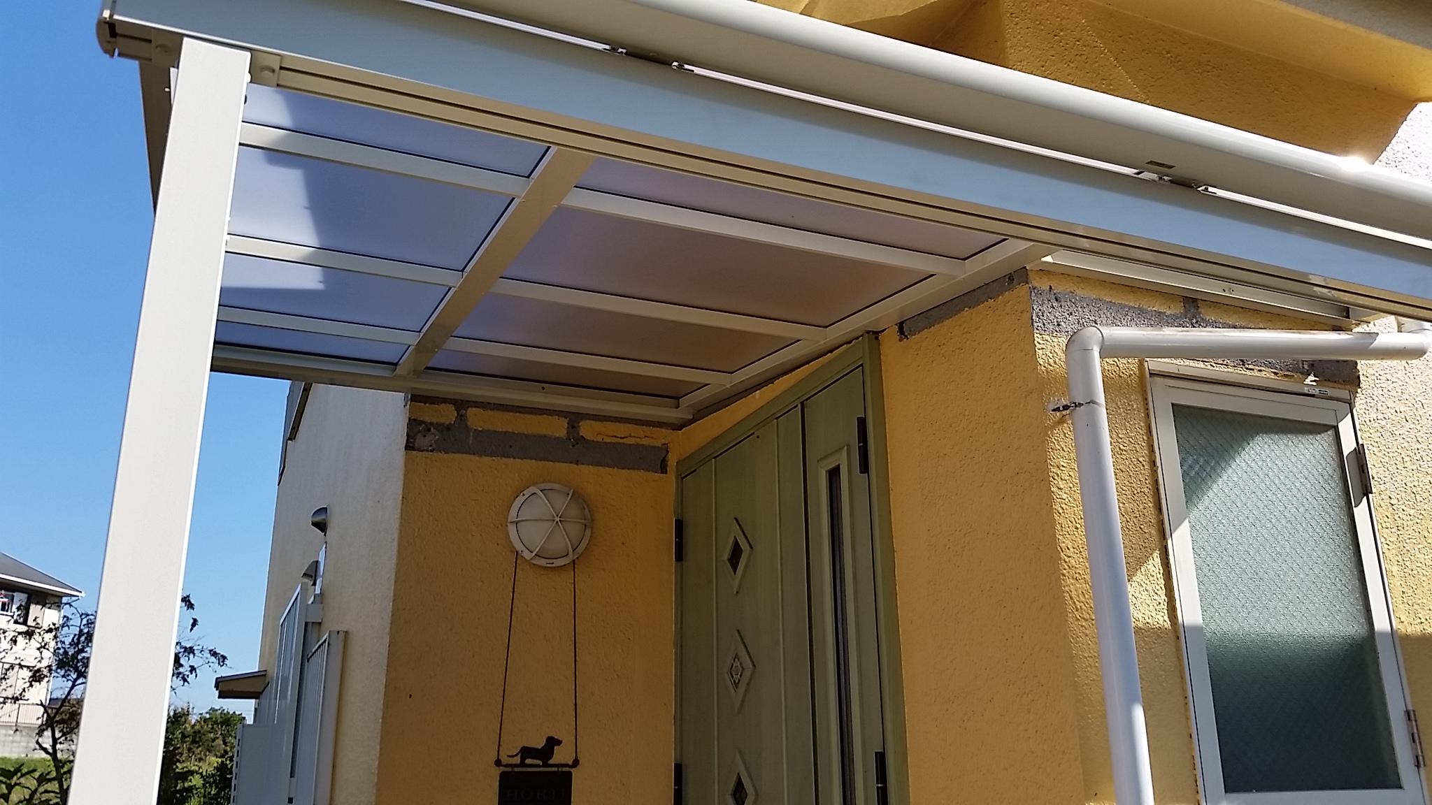 今回は屋根と目隠しの工事をしましたので玄関周りのエクステリアについて書いてみました。