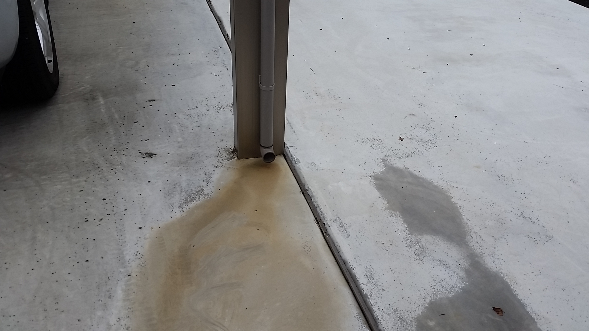 カーポートなど、屋根をかけて満足したけど雨が降った後、雨樋からの排水でコンクリートがこんな状態に・・・
