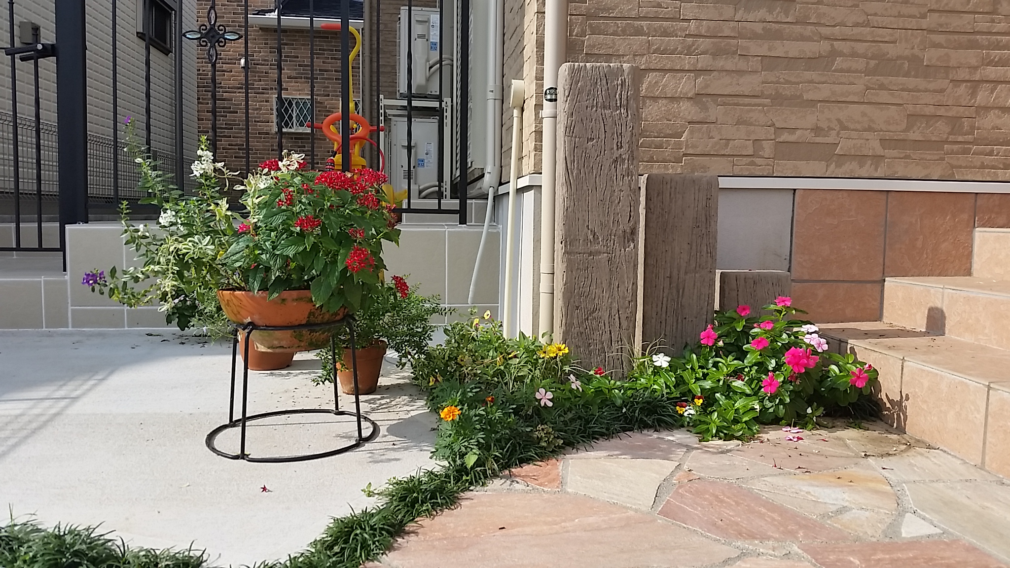 沢山の花が咲くアプローチの完成です。