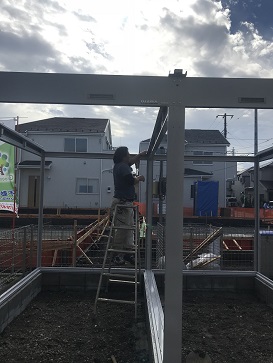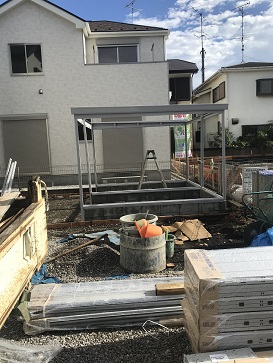 2連棟バイクガレージの組立中にお邪魔しています(*‘∀‘)