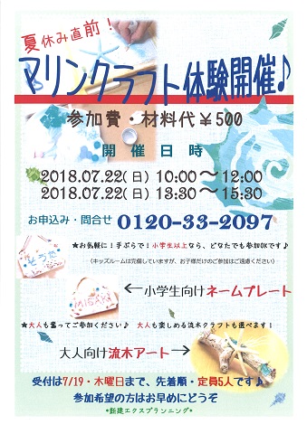 マリンクラフト体験を開催いたします(*^▽^*)