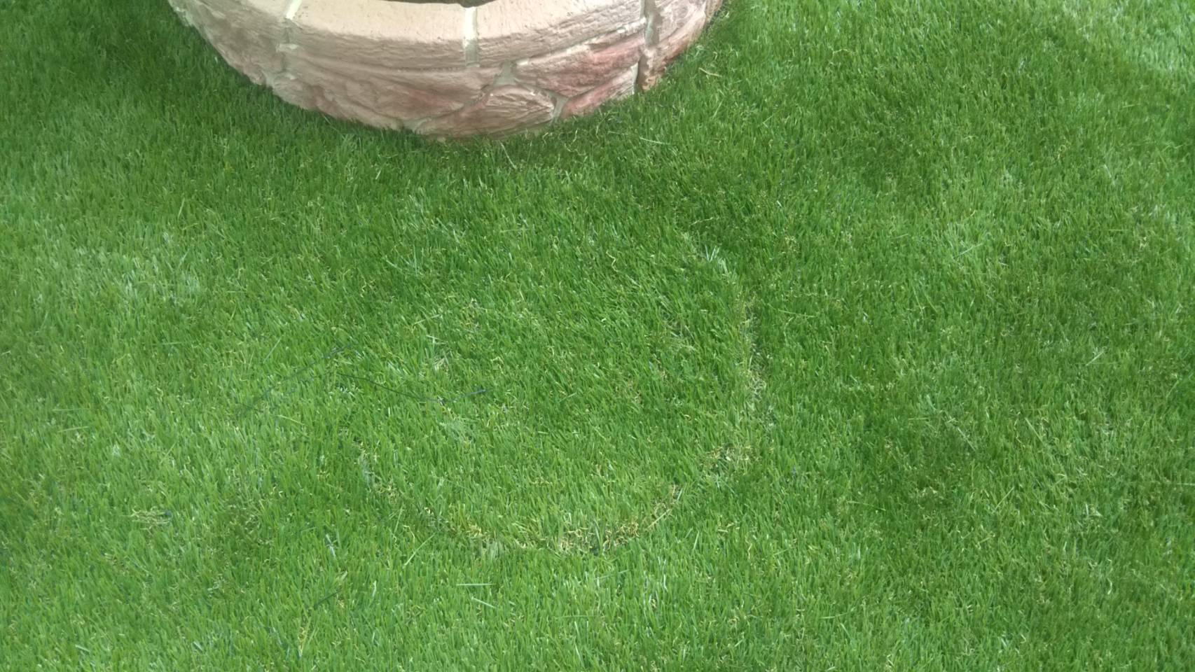 くり抜いた人工芝をそのまま貼りつけたので、綺麗に周りとなじんでいます。