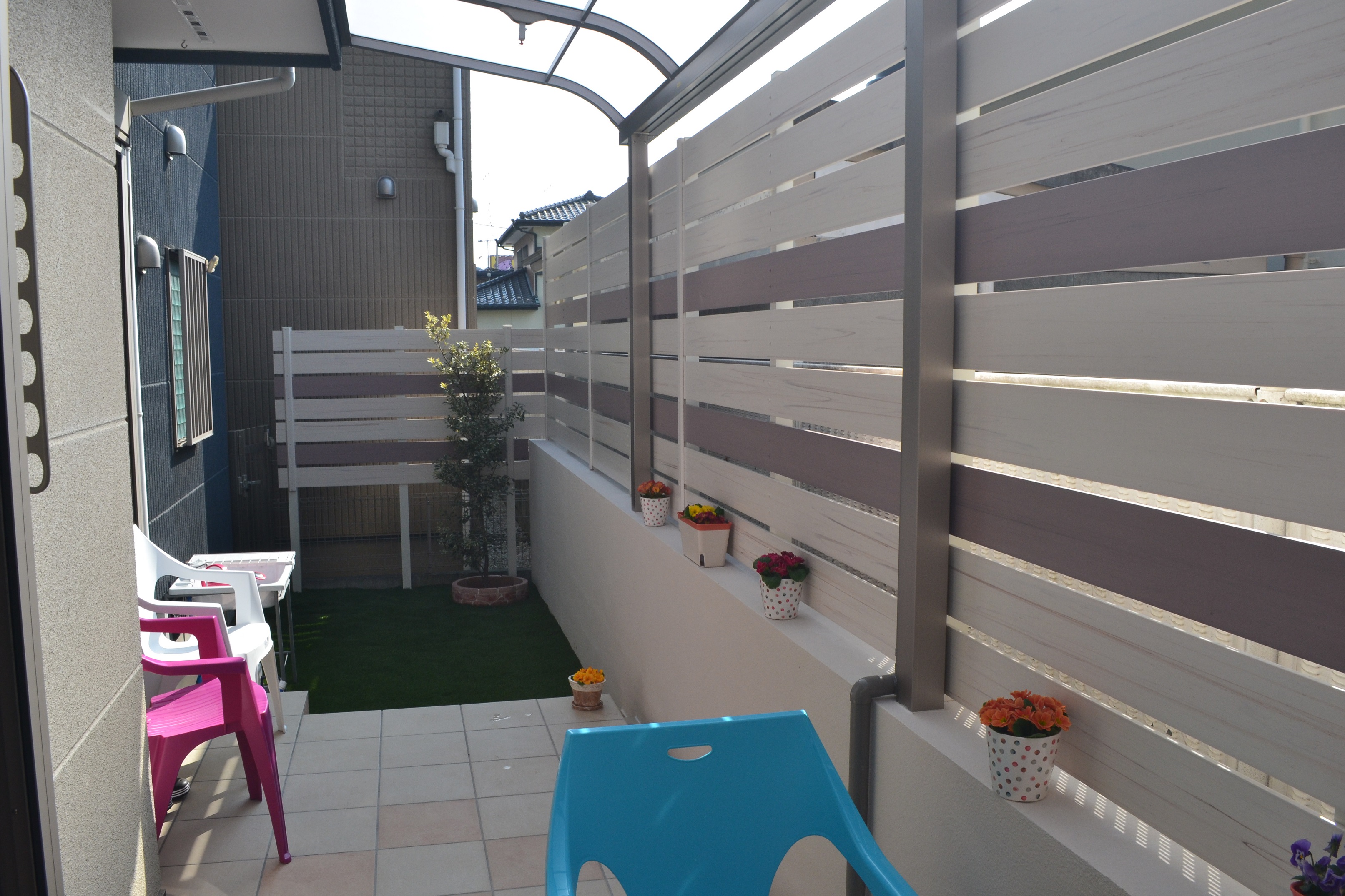 さて、先日タイルテラスが完成したお客様より土の部分を人工芝にしたいと追加のご依頼を頂き施工して参りました。