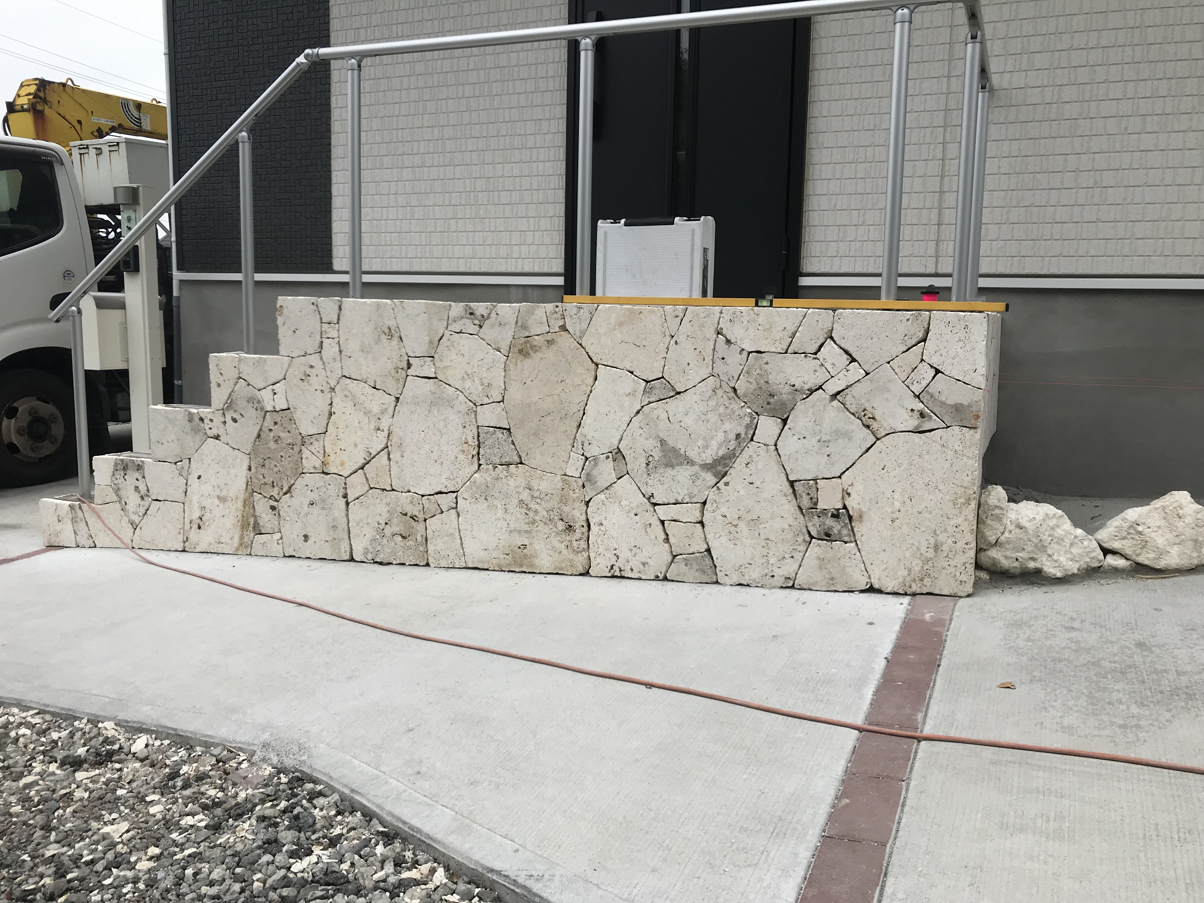 琉球石灰岩を使って壁面を綺麗に化粧していました(*‘ω‘ *)