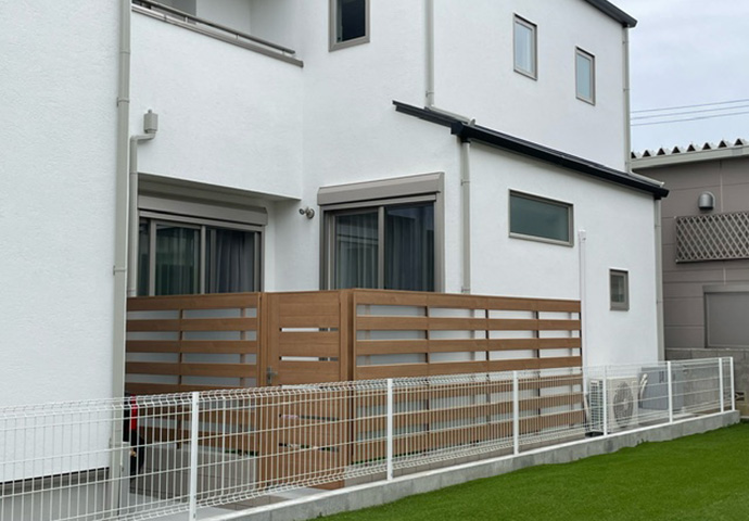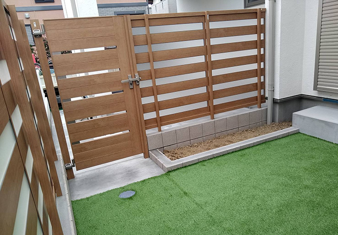 庭は目隠しフェンスで囲って人工芝を敷きました。