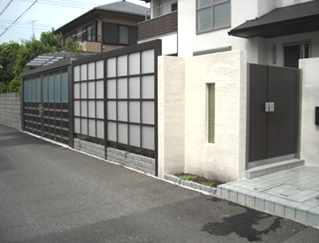 プレミエスゲートに高さを合わせ、プライバシーをしっかりと保護する目隠し壁 TOEX プラスGを施工