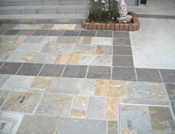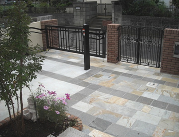 アプローチには天然石(名古屋モザイク)を使用しています。
