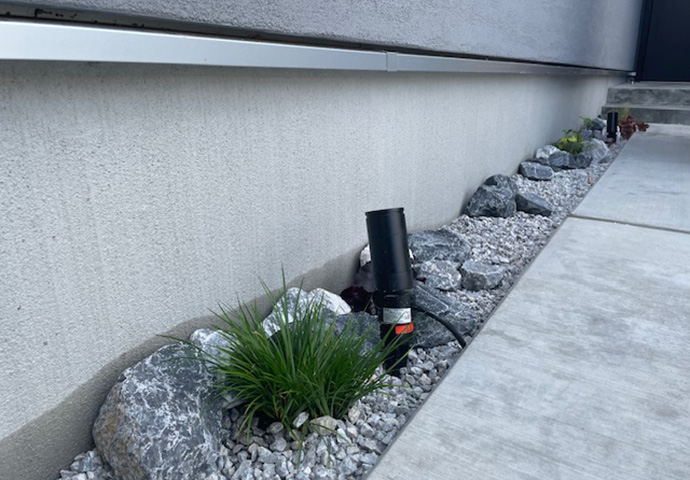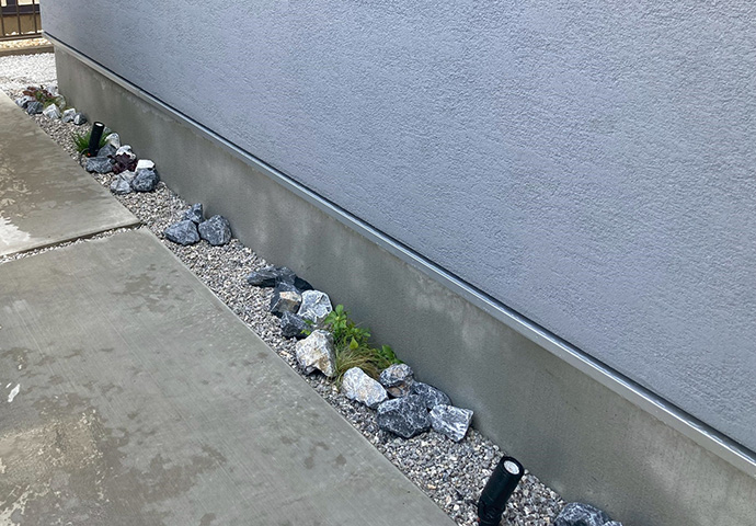 スリット部分には、ガーデンロックと植物の他にもスポットライトを。
