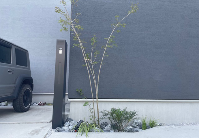 デザイン性のある外構をご希望の施主様。色々なプランをご検討され、納得頂けるプランの完成となりました。