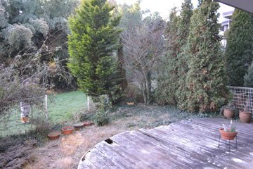 伸びきった木と老朽化したデッキで暗いイメージになっていたお庭を、タイルテラスでイメージチェンジします。