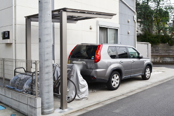 駐車スペース後方にサイクルポートを設置し、今までお庭に置かれていた自転車やバイクもすっきり収まりました。