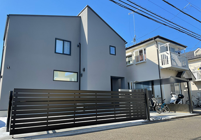 クールでダイナミックなデザインの外構となりました。