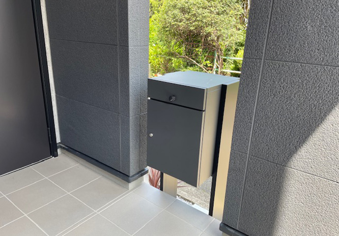 宅配ボックスはエントランス開口部から取り出したいと施主様の希望に合わせた位置で。