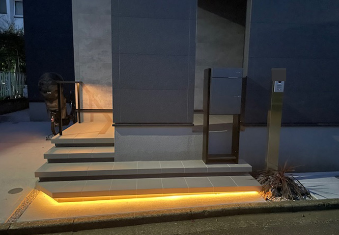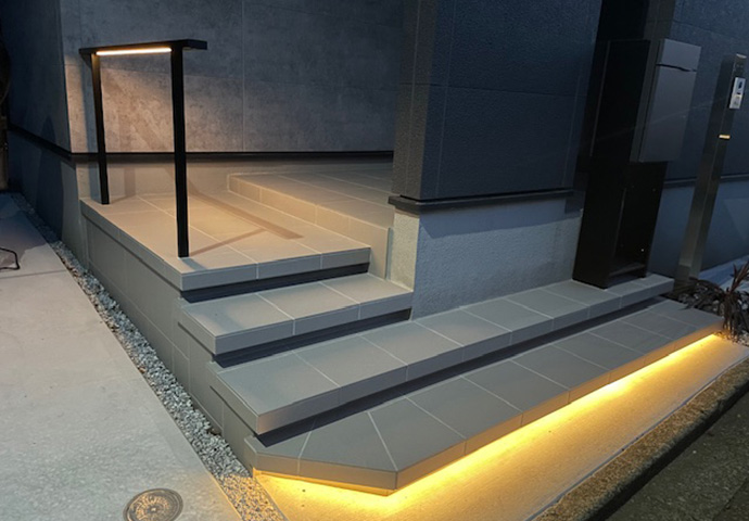 ステップ全てにライトを入れるのではなく、最終段のみにライトを設置。