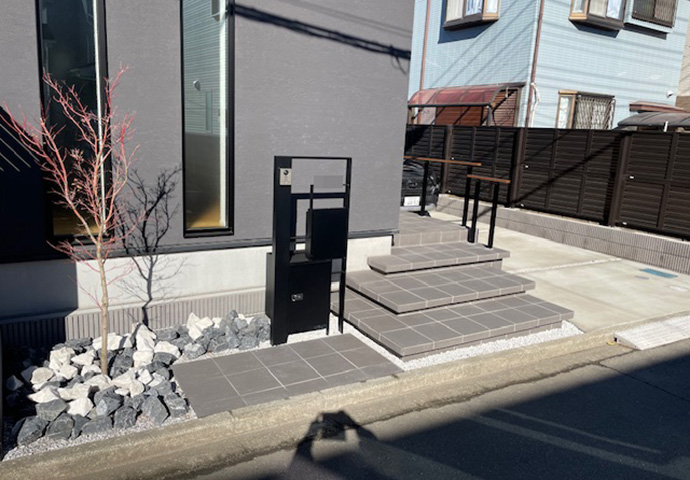 かっこいい平屋の自宅に合わせた、シンプルながらもカッコいいエクステリアが出来ました。
