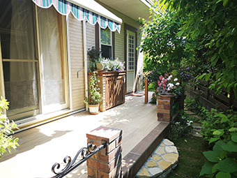 テラス屋根は袖壁のないタイプなので、屋根の足元は、草花を楽しむちょっとした花壇になりました。