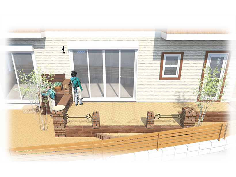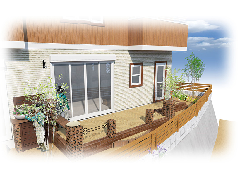プラン例⑤ 花壇に囲まれたオープンテラスで憧れのお庭に