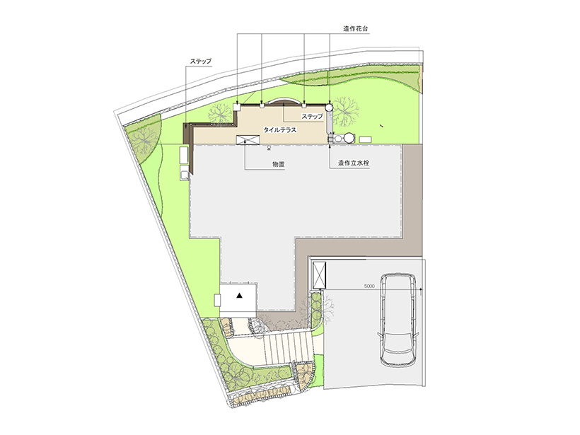 - 眺望を味わえる高台を活かした外構プラン