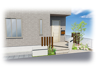 「玄関ドアを開けていると道路から丸見え!玄関だけじゃなく、部屋の中まで見えてしまいそう」といったご心配を解消する、おしゃれに玄関を目隠しするプランです。